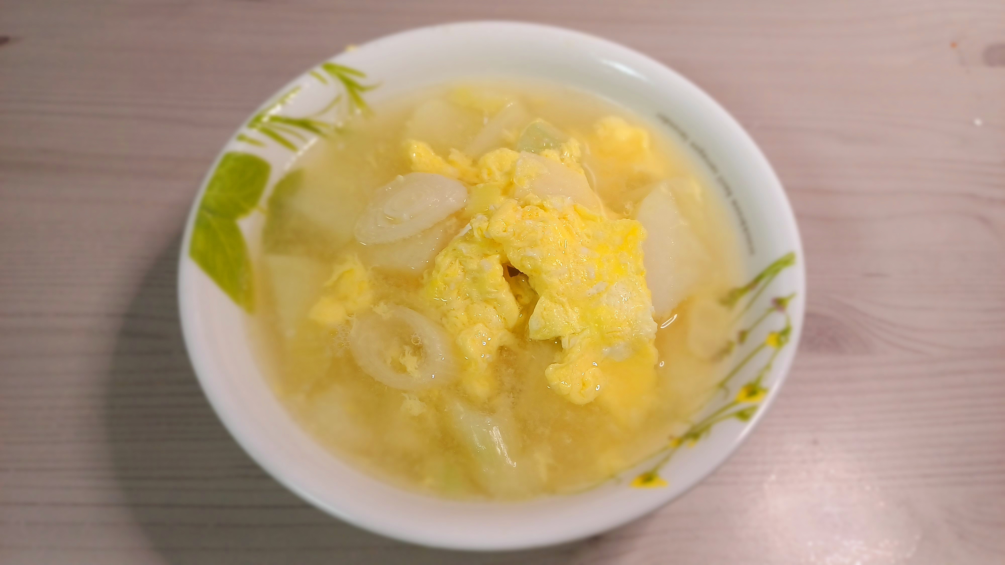 재료육수물 600ml, 국물용 멸치 20g, 다시마 2장채소감자 100g, 대파 15cm, 다진 마늘 5ml육류달걀 1개과정육수 만들기육수 재료를 넣고 강불에서 끓이다가 끓어오르면 약불로 5분간 끓이기다시마를 빼고 약불로 10분간 끓이기.멸치를 빼기채소 넣기얇게 썬 감자, 어슷썬 대파, 다진 마늘을 육수에 넣고 강불에서 끓어오를 때까지 끓이기중약불로 5분간 끓이기대파 넣기육류 넣기 달걀물을 넣고 1분간 끓이고 간을 맞추기 위한 조미료를 넣고 30초간 끓이기tip달걀물을 넣고 어느 시점에 저어주냐에 따라 응고되는 달걀의 입자 크기가 달라져서 국물의 색이 달라진다.